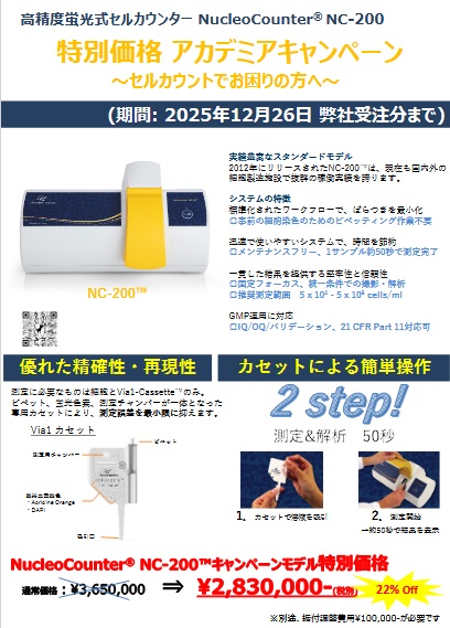 「セルカウンター NucleoCounter® NC-200 アカデミアキャンペーン」