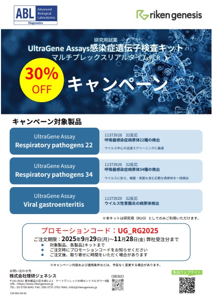 感染症マルチプレックスリアルタイム PCR キット「UltraGene Assays」30%OFF キャンペーン!