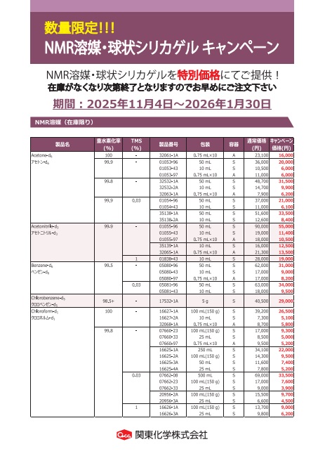 「【数量限定!!】NMR用重水素化合物・球状シリカゲル キャンペーン」