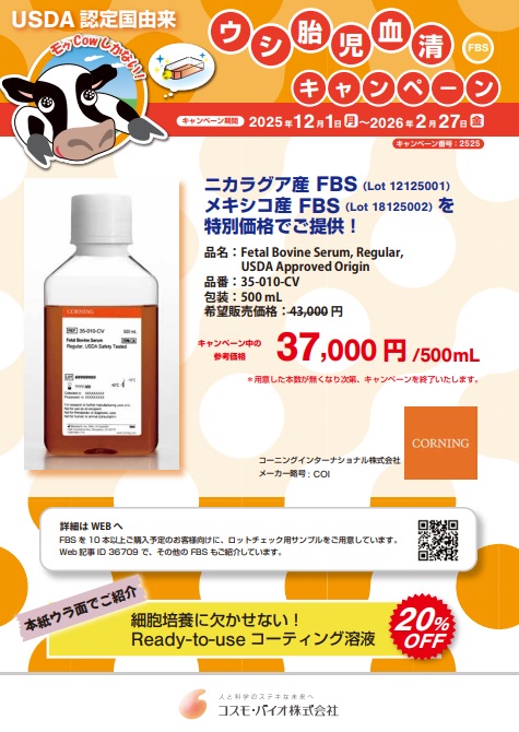 「ウシ胎児血清 (FBS) 特別価格キャンペーン」