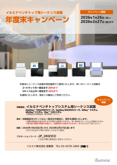 「イルミナベンチトップシステム用シーケンス試薬 年度末キャンペーン」