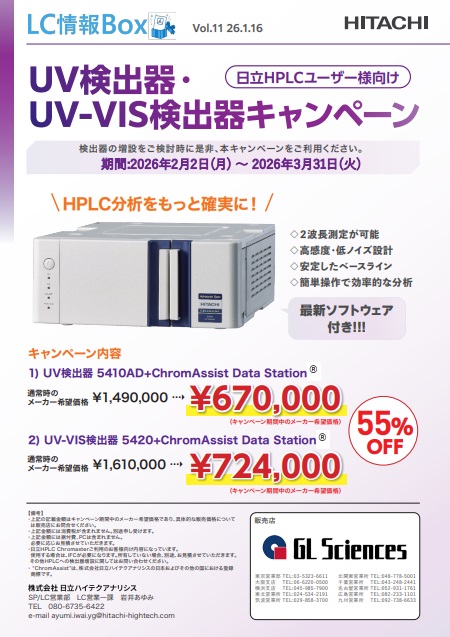 日立HPLC Chromaster・Chromaster PLUS用 UV検出器・UV-VIS検出器増設キャンペーン