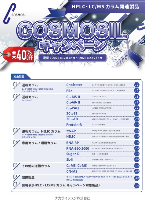 COSMOSIL(HPLC・LC/MS カラム)キャンペーン 最大40%OFF