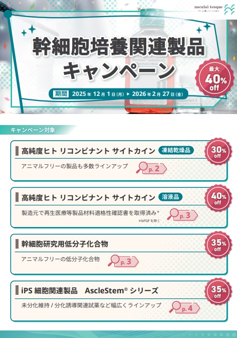 「幹細胞培養関連製品キャンペーン 最大40%OFF」