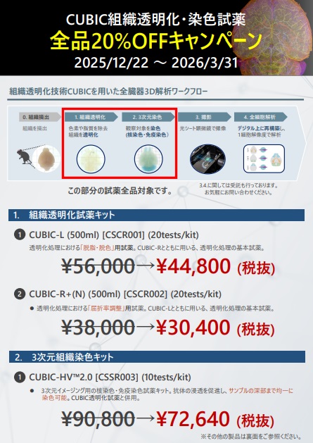 「[CUB] CUBIC組織透明化・染色試薬 20%OFFキャンペーン」