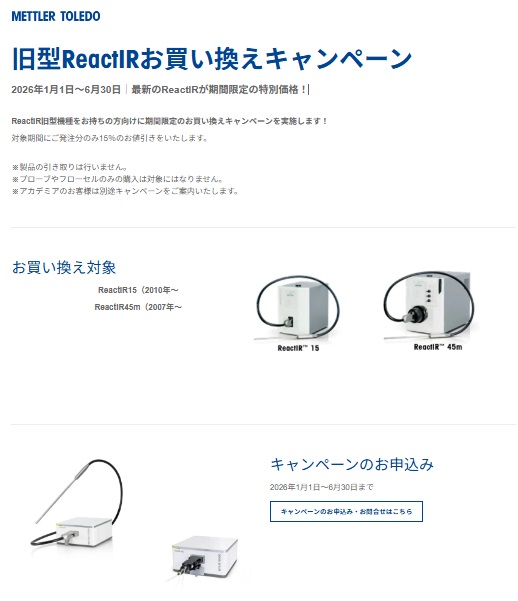 ・ReactIR旧型機種をお持ちの方向けに期間限定のお買い換え