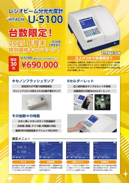 【30台限定3月末まで】日立分光光度計U-5100年度末キャンペーン